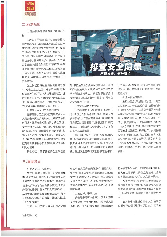 加強安全隱患排查是預(yù)防事故的第一道防線,直接關(guān)系人民群眾最根本的利益,也是企業(yè)生存發(fā)展和履行社會責(zé)任的必然要求,對保障經(jīng)濟平穩(wěn)運行和社會和諧穩(wěn)定至關(guān)重要。必須深刻認(rèn)識其重要性,將其作為一項基礎(chǔ)性、長期性、根本性的工作抓緊抓實抓細,堅持關(guān)口前移、源頭治理,真正做到防患于未然。